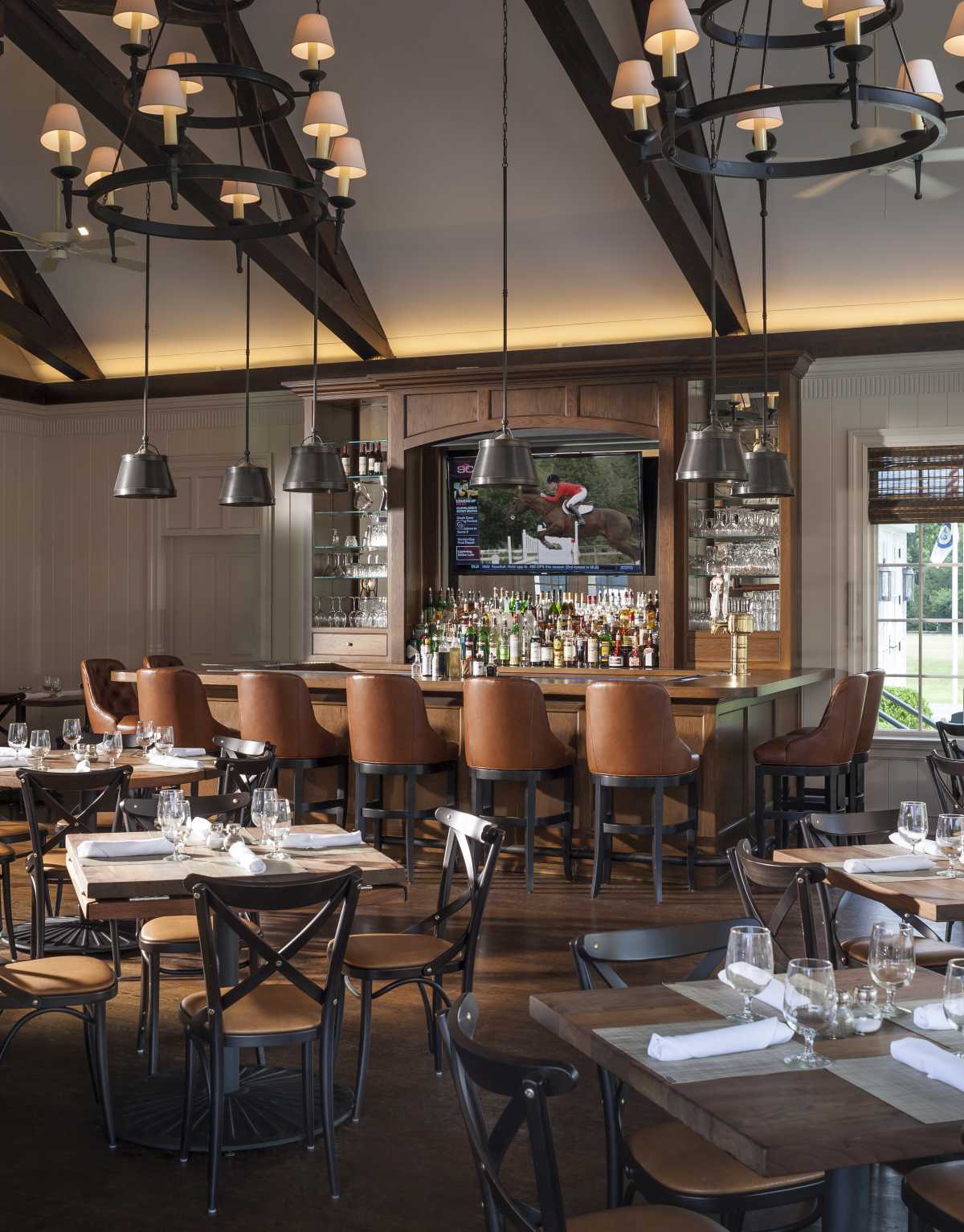 Our Main Dining Room opens up to a veranda that offers additional four-season seating and overlooks the Polo Field. The Polo Room is available for small events with a service bar and opens to our seasonal patio dining area. The Grill Room offers a beautiful bar, fireplace and opens to an additional veranda and casual seating area by our outdoor fireplace.